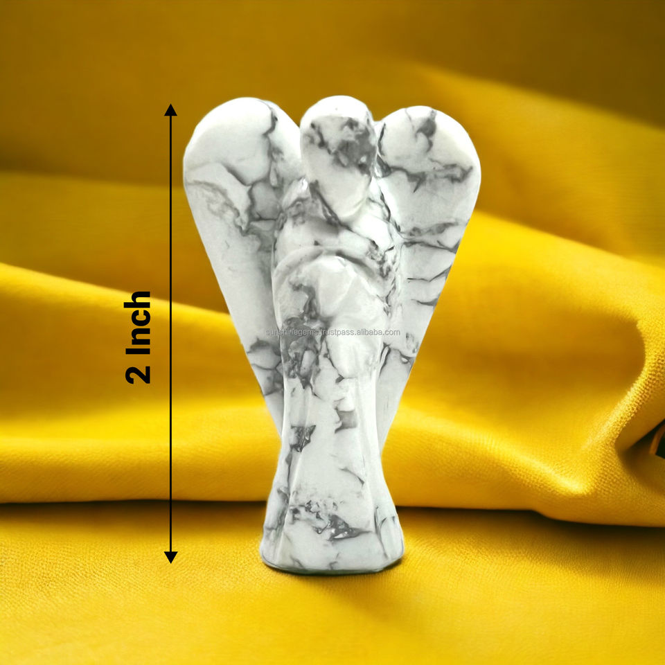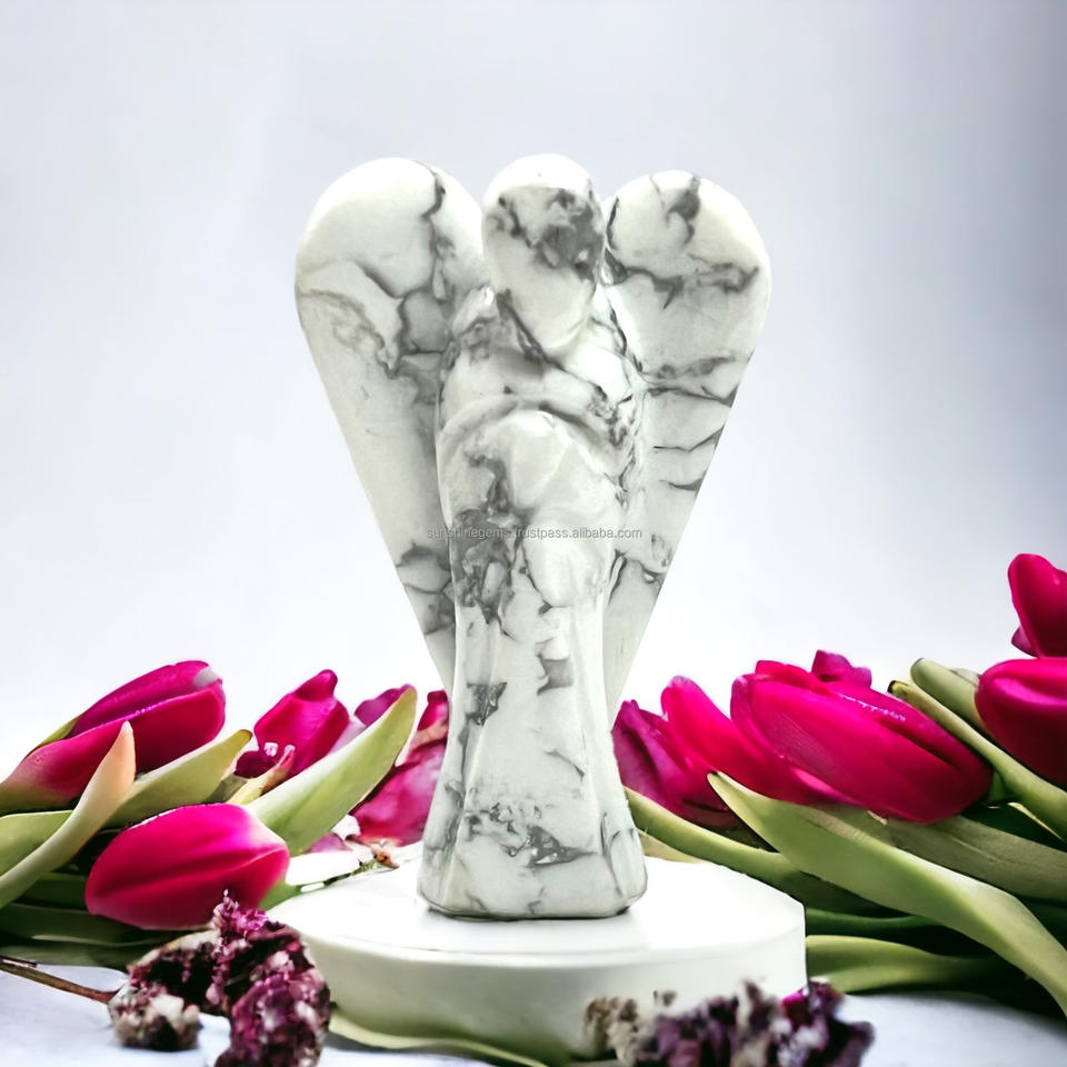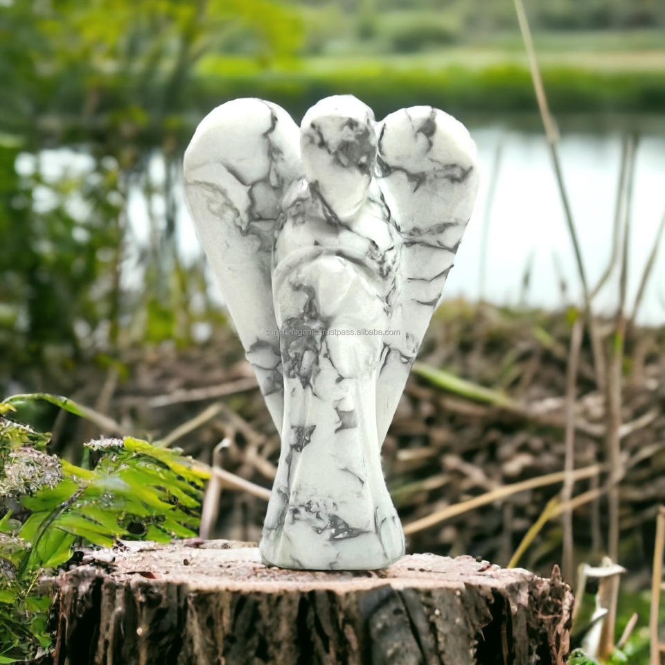 Estatua de Ángel guardián de Ángel de cristal de howlita a granel, estatuilla, piedras preciosas calmantes, ángeles para curación espiritual y cristales de protección