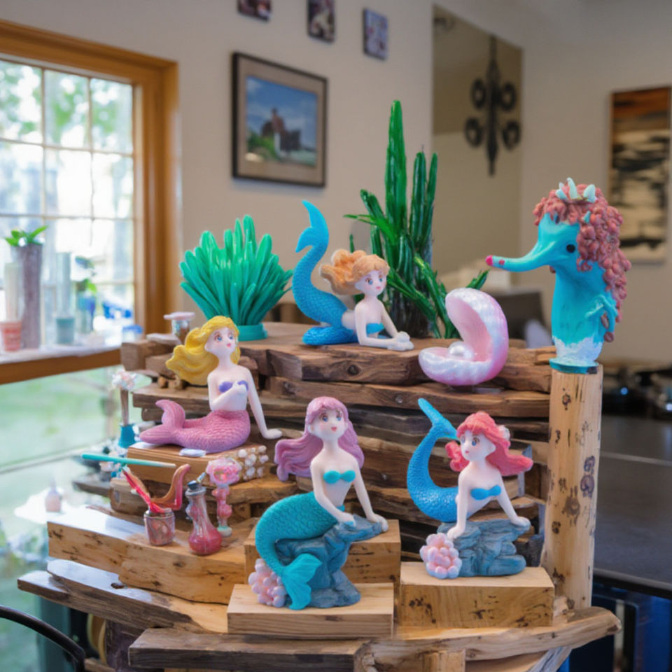 Artículos a granel, lotes al por mayor, pequeñas criaturas en miniatura sentadas, almacenamiento de sirena de resina, adornos de jardín de hadas, estatuilla para niñas