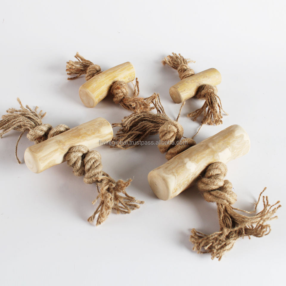 Description:This tug-style dog toy is made from tough coffee wood