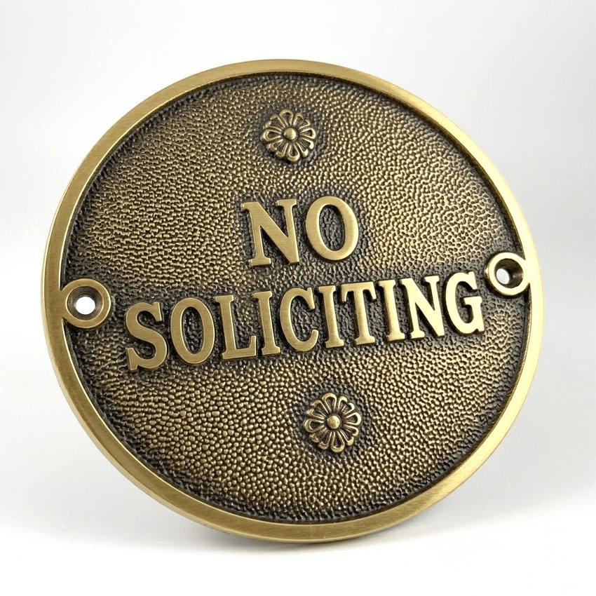 Etiqueta metálica personalizada con logotipo en relieve para puerta de casa, letrero de prohibido la entrada, pedido al por mayor