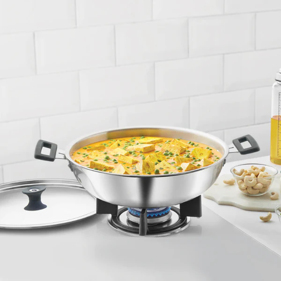 Product name:Triply Deep Fry Pan Kadhai With Stainless Steel Cover