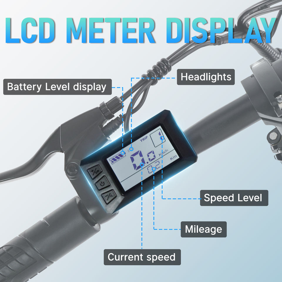 Plegable, LED pantalla, Shock absorption, Frenos de Disco, Ayuda del pedal, Batería extraíble, Asiento ajustable, Marco ligeroCaracterística