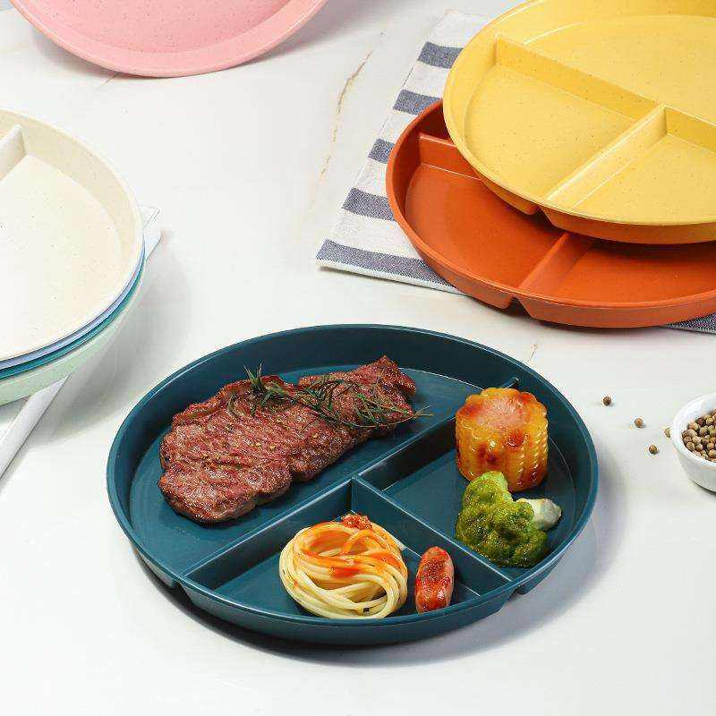 Paquete a Granel de Platos Divididos de 3 Compartimentos de Paja de Trigo, Platos Comerciales de 9 Pulgadas para Servicio de Alimentos, Platos de Cena de Plástico para Escuela