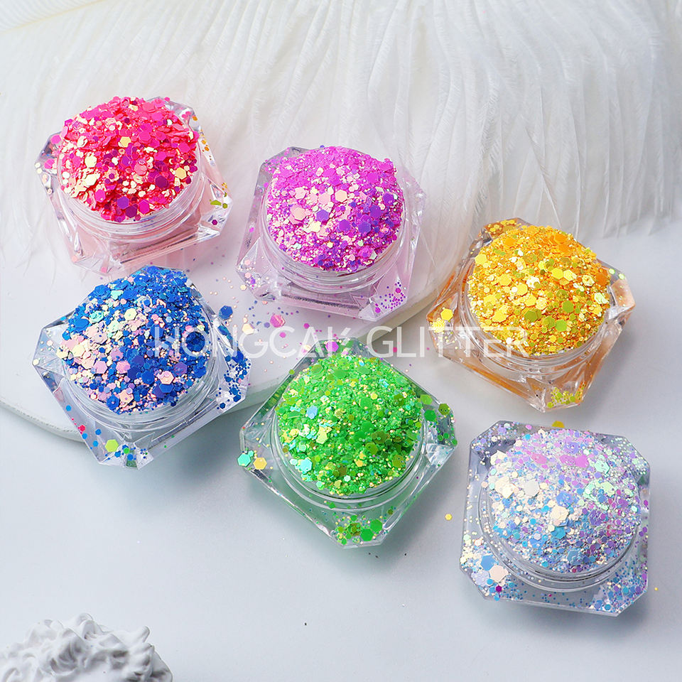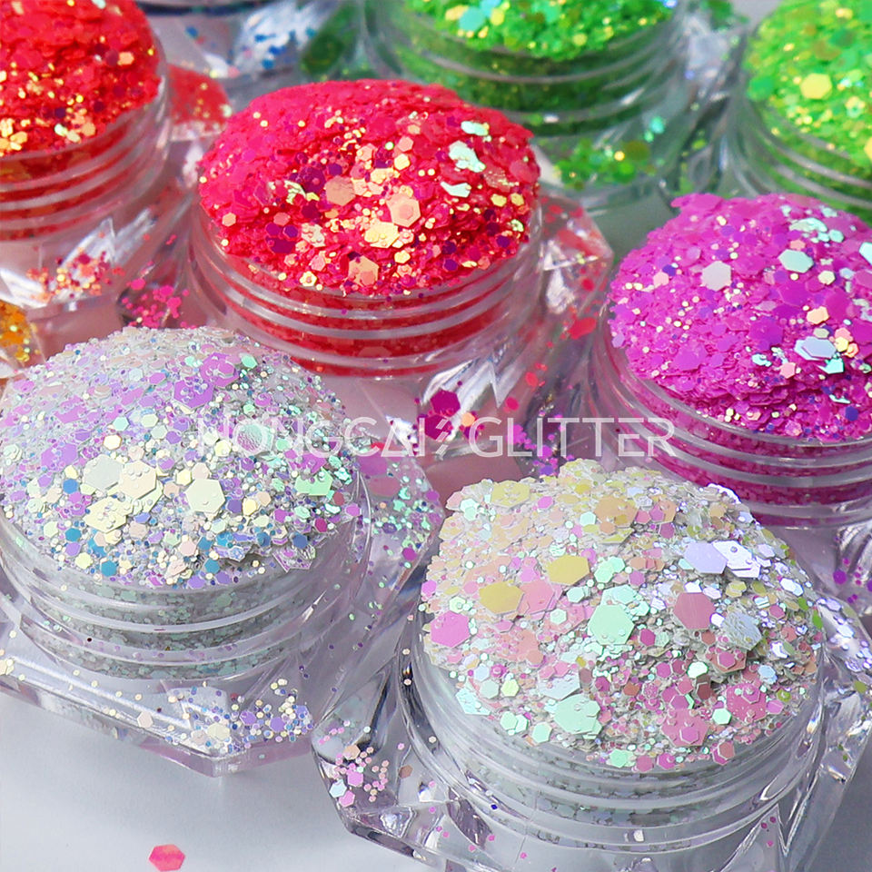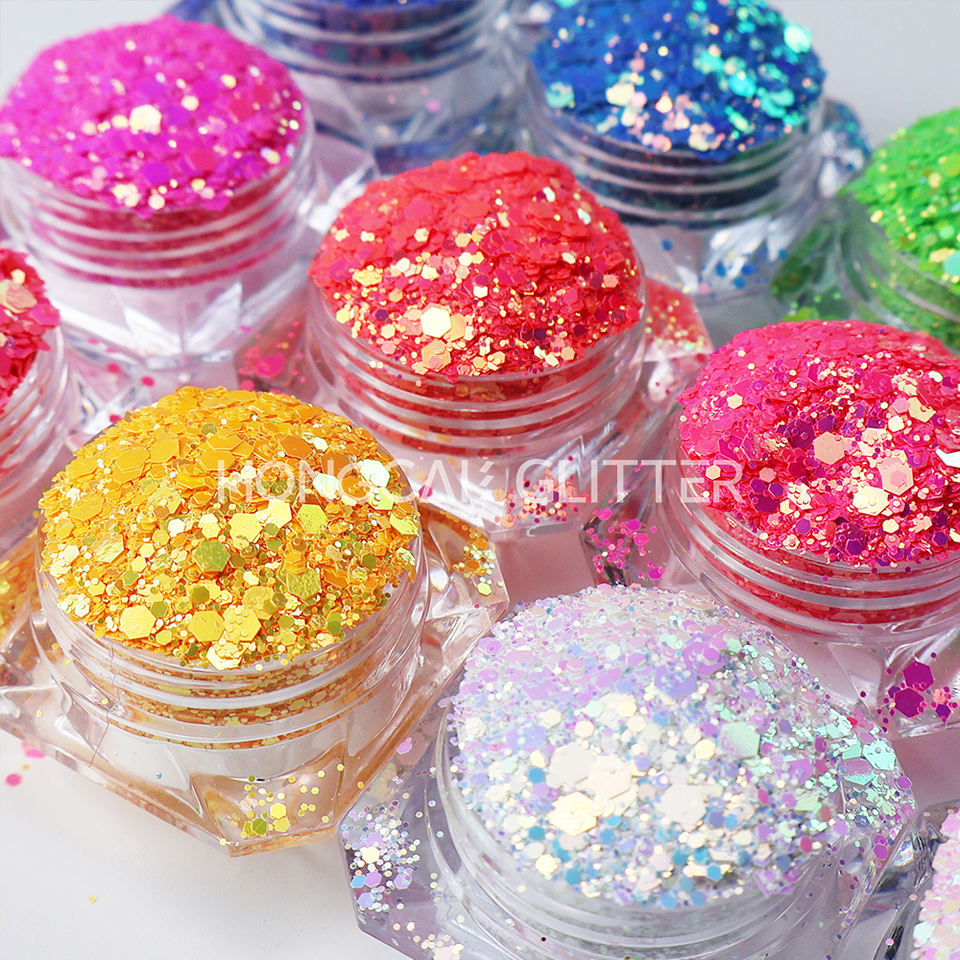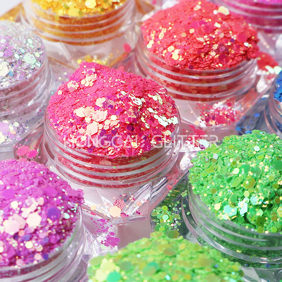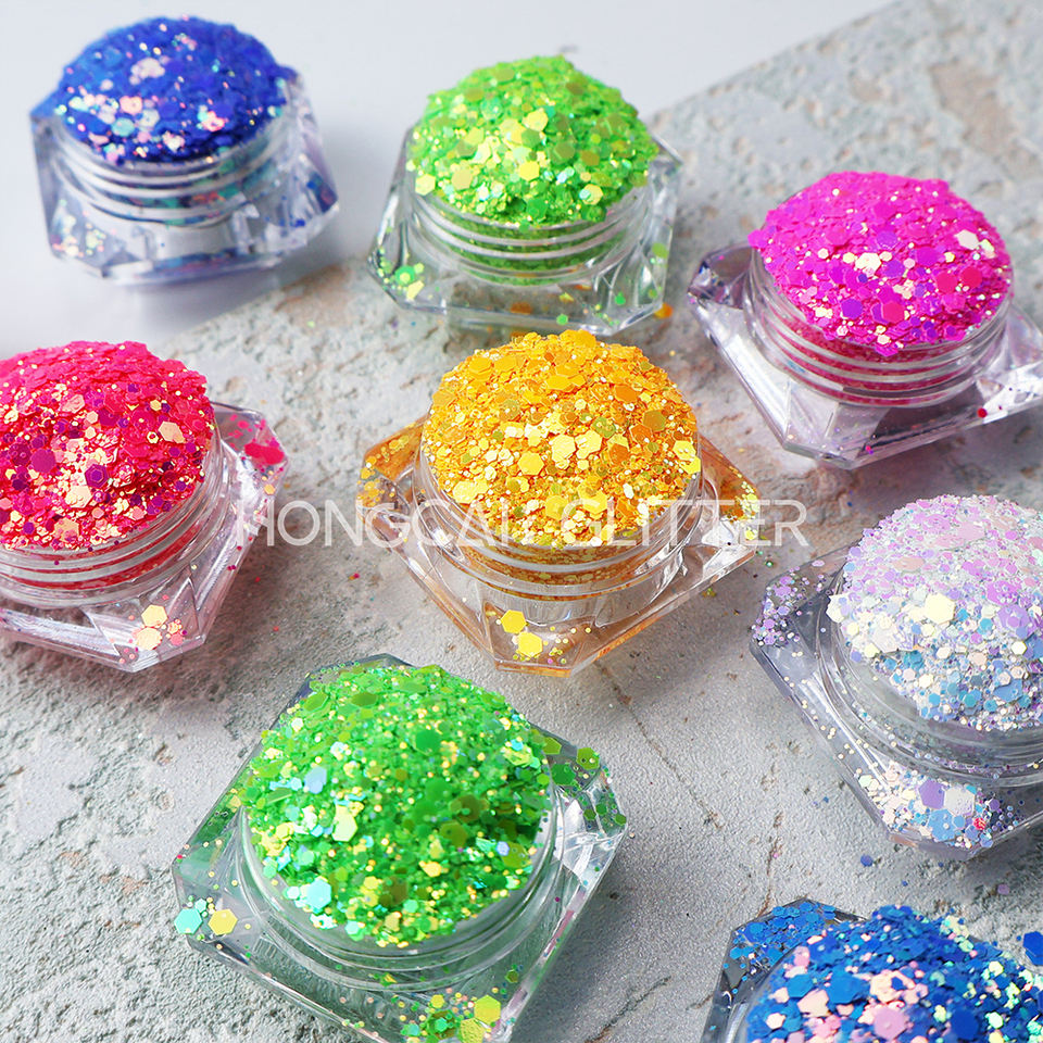 Proveedor de Purpurina Fluorescente de Poliéster para Decoración de Uñas, Purpurina de Cambio de Color Neón para Vasos, Decoración Navideña