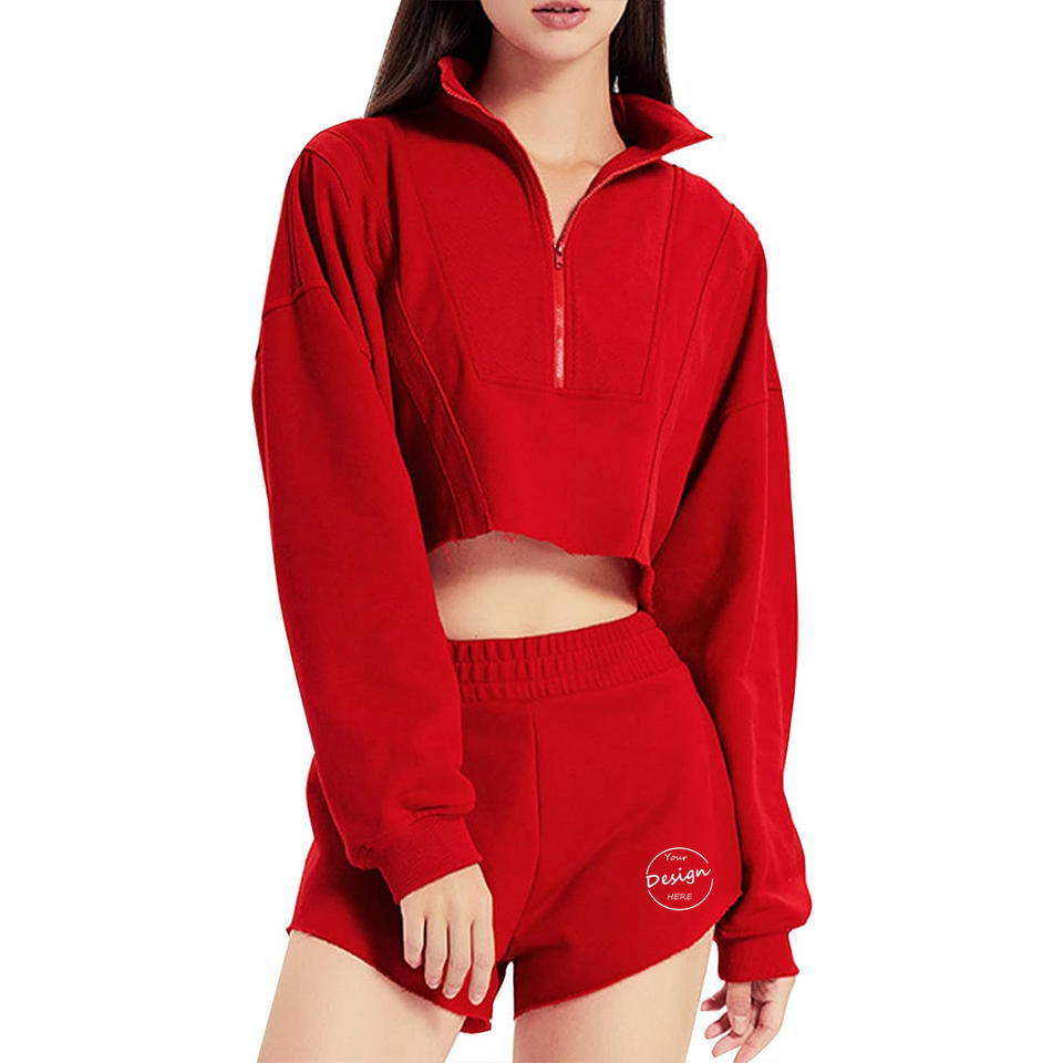 Número de Modelo:Crimp Half Zip Hoodie Shorts Set