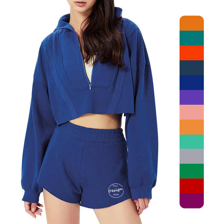 Product name:Crimp Half Zip Hoodie Shorts Set