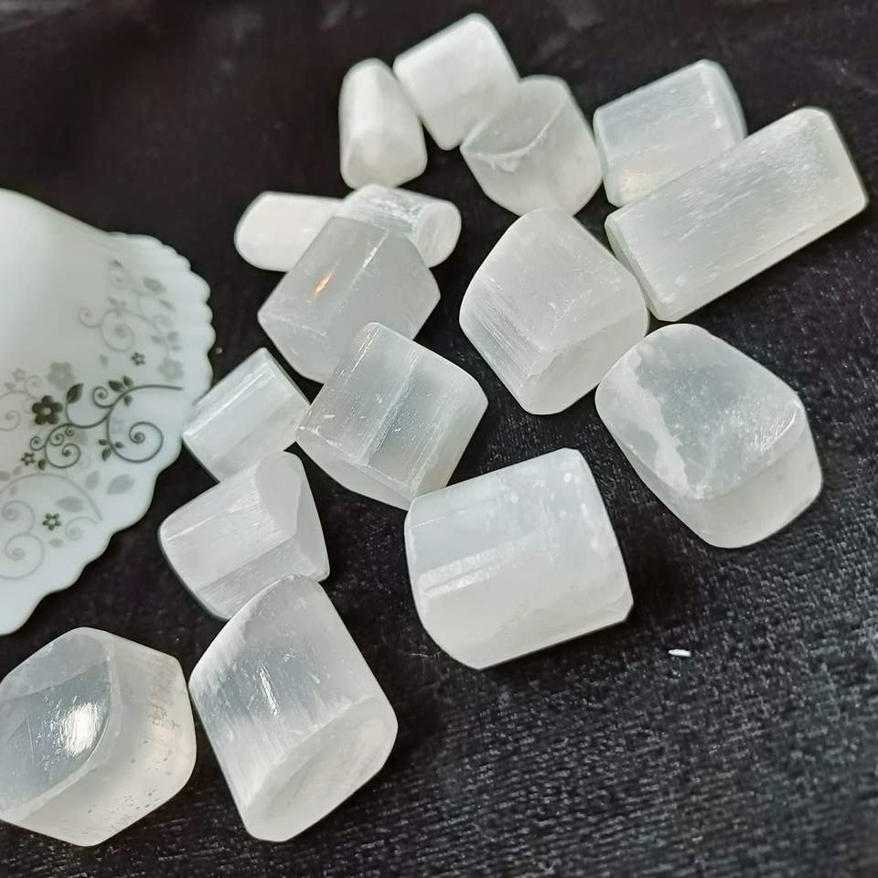 Piedras preciosas caídas de cristal de selenita a granel-Fabricación de joyas y cristales de energía positiva-Caída de cristal pulido de selenita