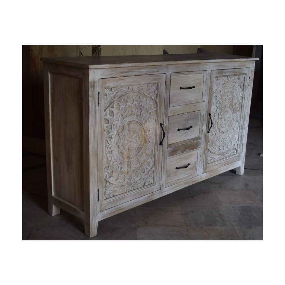 Wooden 3 Drawer 2 Carved Door Cabinet Sideboard