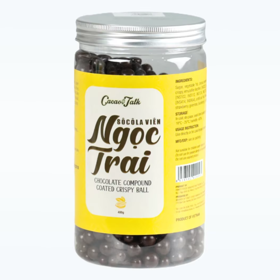 Contenido:Dark Chocolate Coated Crispy Balls
