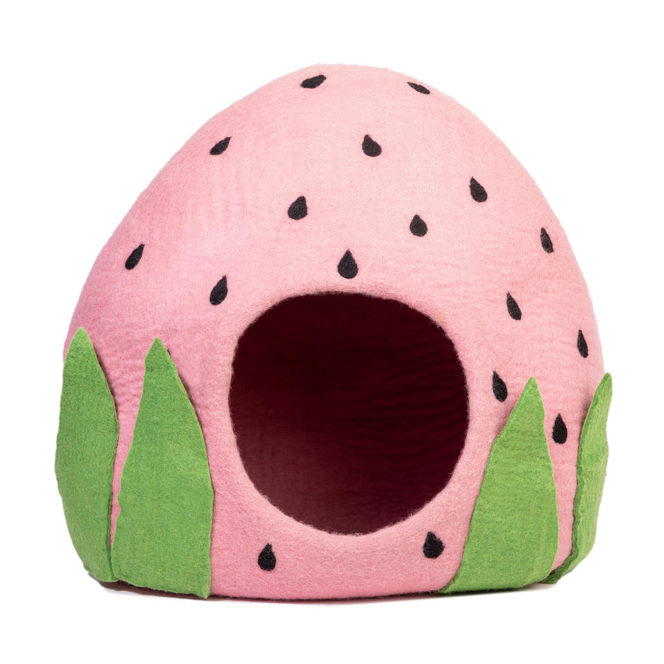 Cama para Gatos de Fieltro de Lana a Granel, Hecha a Mano, Gris Rayada, Forma Ovalada, Desmontable y Lavable, Fabricada en Nepal, OEM, Marca Privada, Gran Volumen