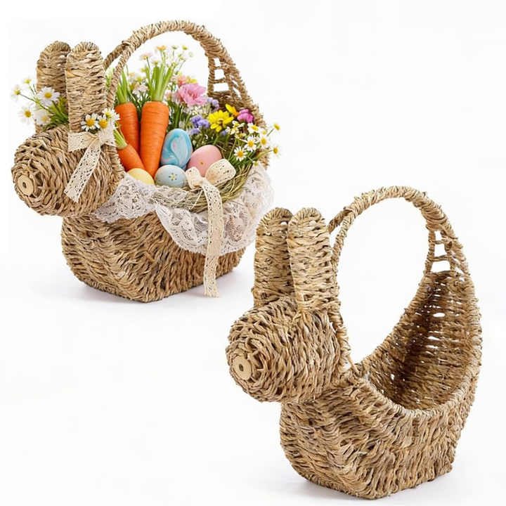 Cestas de paja marina para Pascua, compra al por mayor, cestas de alta calidad tejidas con forma de conejo.