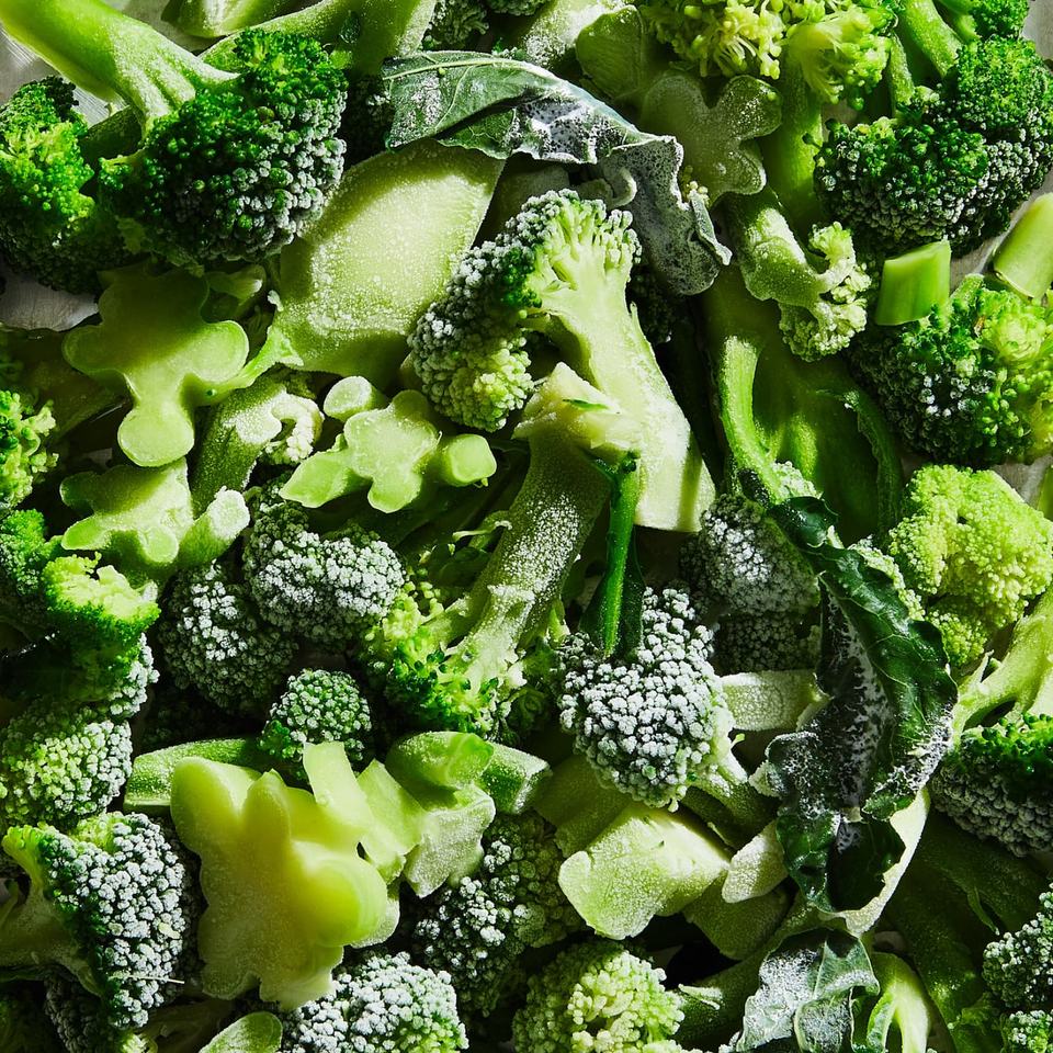 Brócoli congelado a granel, vegetales de alta calidad, bajo en calorías (34 kcal), 2.8 gramos de proteína, 89 por ciento de contenido de agua, apto para meses de conservación.