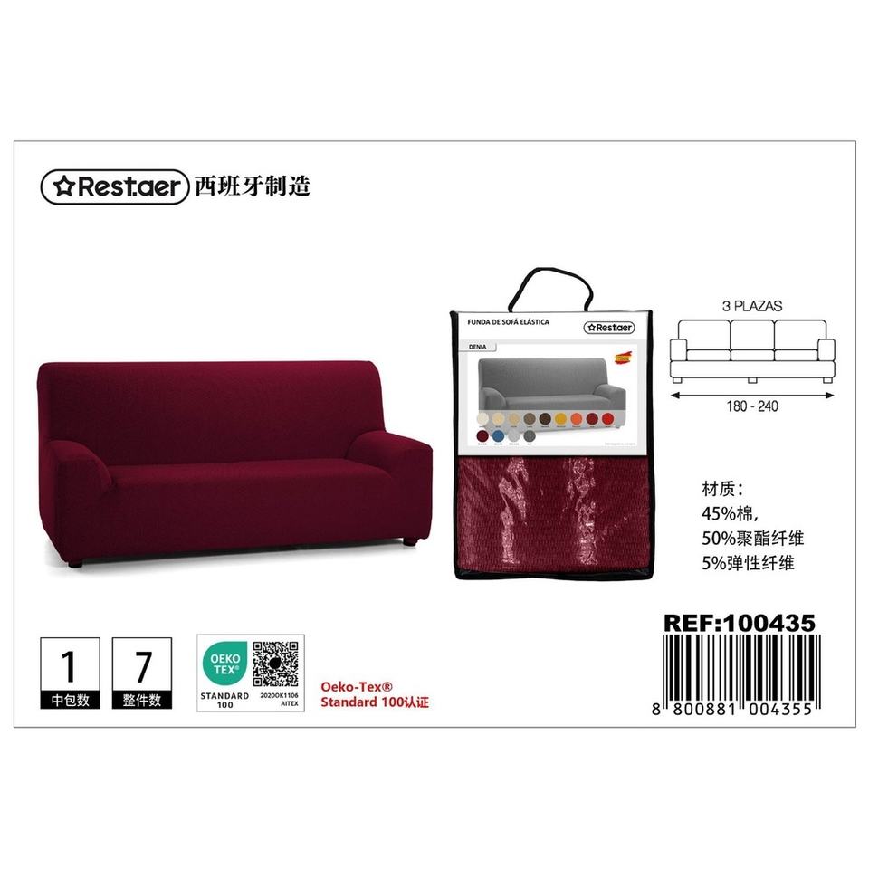 Fundas de sofá de 3 plazas color Burdeos-Textiles para el hogar