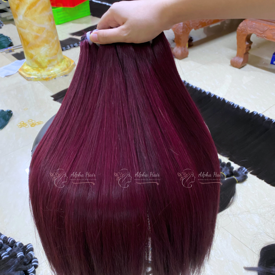 Paquetes de cabello crudo vietnamita puro barato en stock grande de Color Burdeos Extensiones de cabello humano virgen Proveedor de cabello liso de hueso