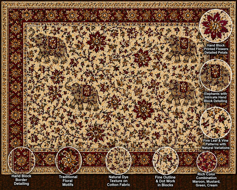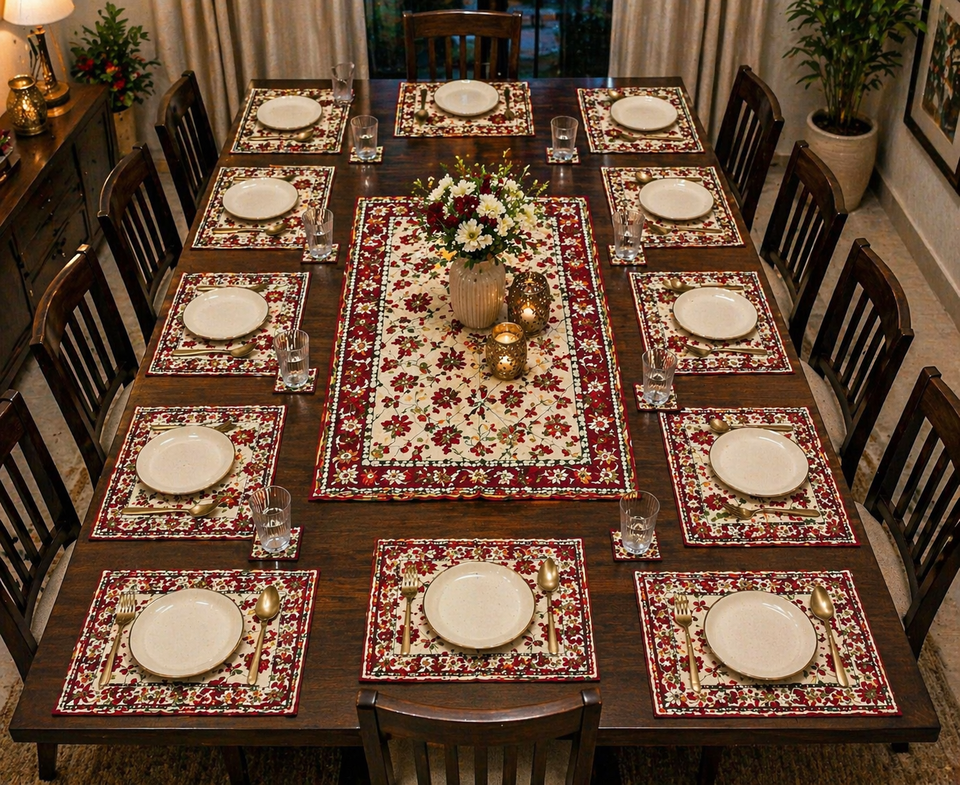 Juego de Manteles Individuales de Algodón Blanco con Estampado a Mano Color Borgoña, Calidad de Exportación, Lavables, Decoración de Mesa, Obra Maestra