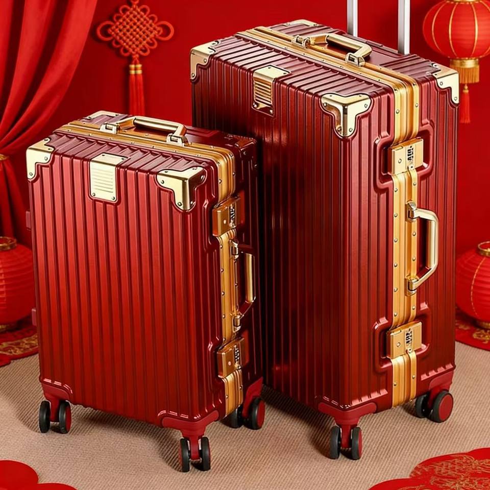 Maleta de Boda Color Borgoña, Gran Capacidad, con Candado de Combinación, Ruedas Giratorias de 360 Grados, para Viajes de Luna Llena