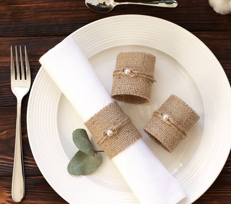 Anillos para Servilletas de Boda de Yute, Decoración Rústica para Bodas, Servilleta Rústica para Boda, Decoración de Mesa de Boda, Rústico