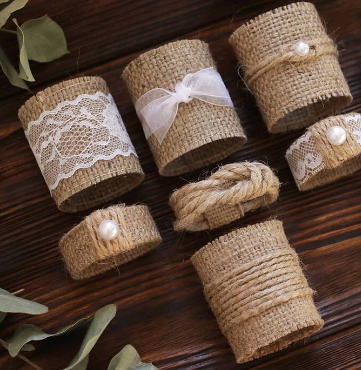 Anillos para Servilletas de Boda de Yute, Decoración Rústica para Bodas, Servilleta Rústica para Boda, Decoración de Mesa de Boda, Rústico