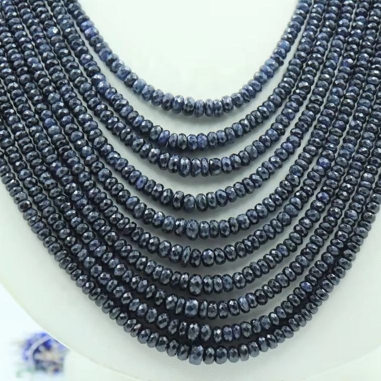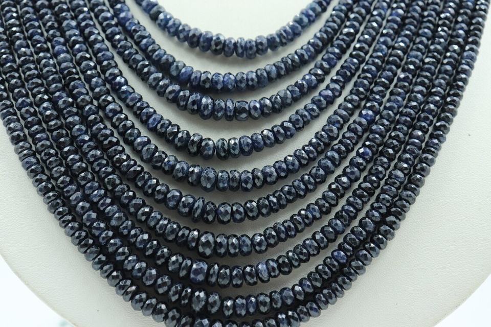 Name:10 STRANDS of Natural Blue Sapphire Faceted Rondelle Necklace