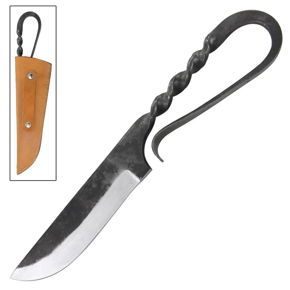 Cuchillo de Cocina Burraq Hecho a Mano, Estilo Medieval, Acero al Carbono Forjado, Multifuncional, Hoja Fija Estándar