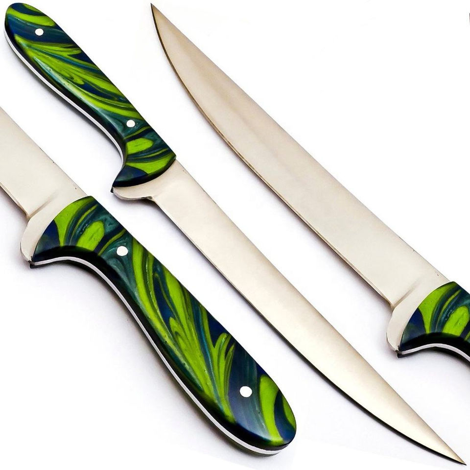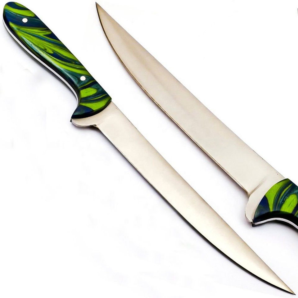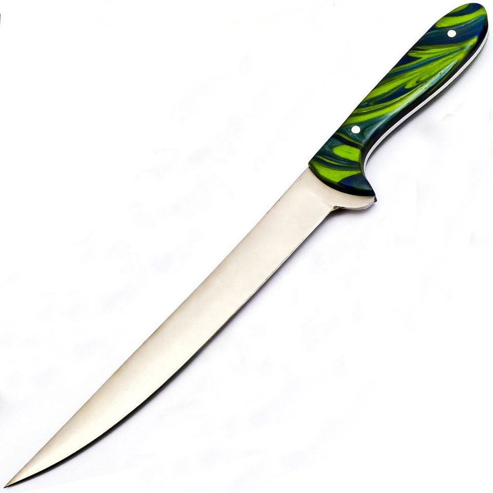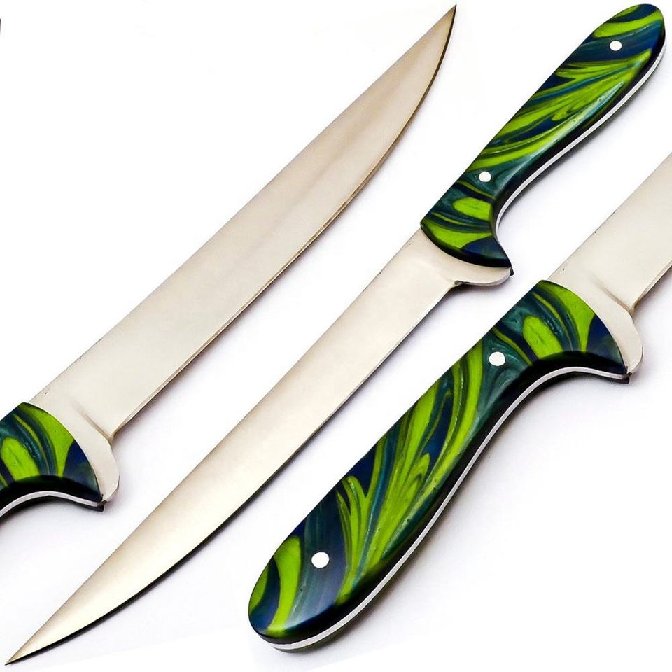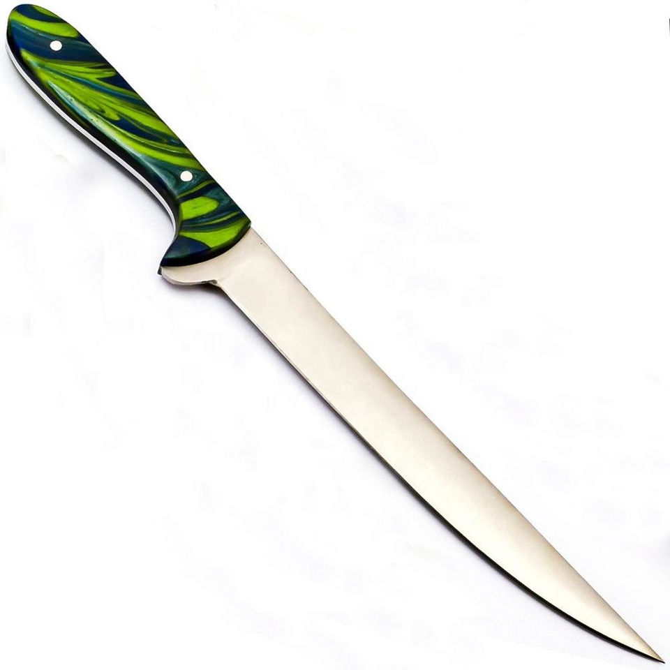 Cuchillo de Filetear Personalizado Hecho a Mano Burraq de Acero Inoxidable con Funda de Cuero, Longitud de Hoja de 8 y 10 Pulgadas, Apto para Lavavajillas