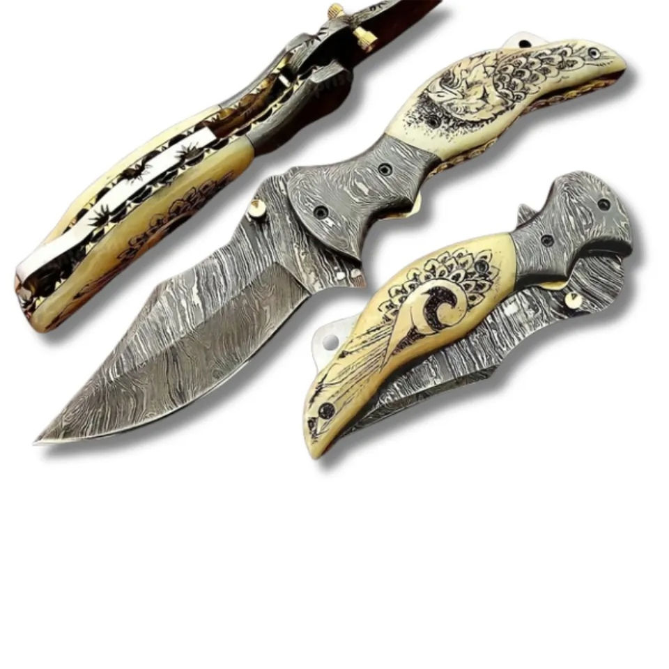 Cuchillo de Bolsillo Multifuncional Burraq DIY OEM, Hecho a Mano con Acero de Damasco, 8 Pulgadas, con Funda de Cuero, para Regalo de Aniversario o Padrino de Boda