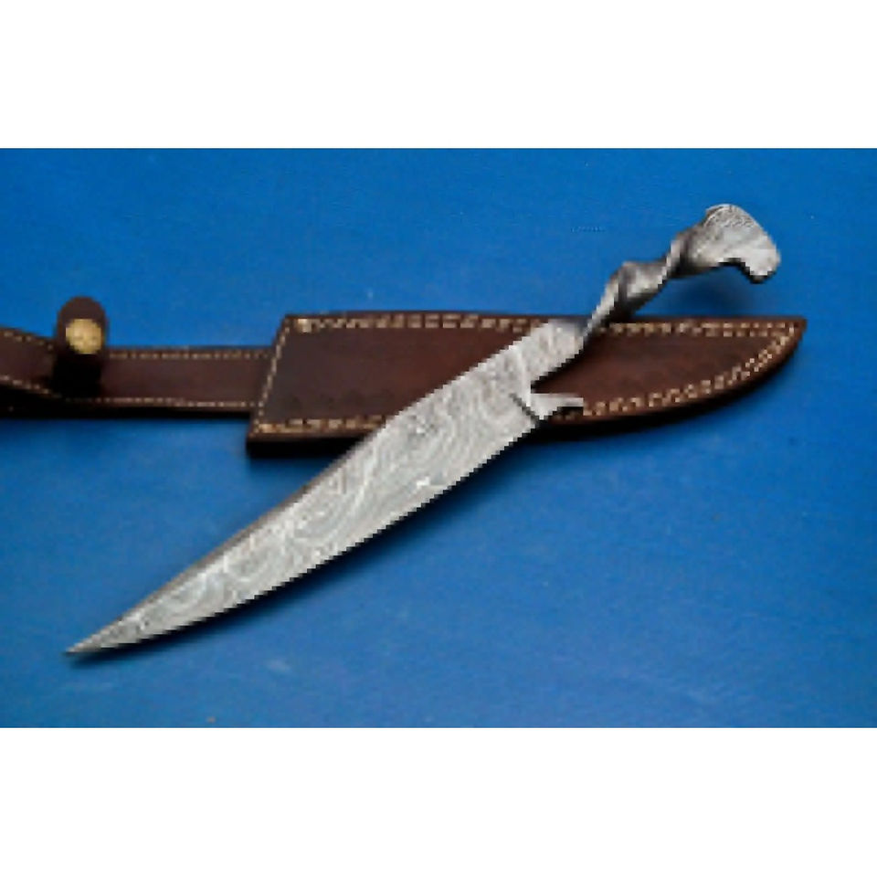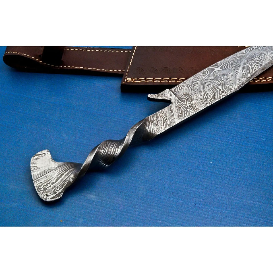 Cuchillo de Cocina Burraq Hecho a Mano, Estilo Medieval, Forjado en Acero de Damasco, Multifuncional, Hoja Fija, Tamaño Estándar