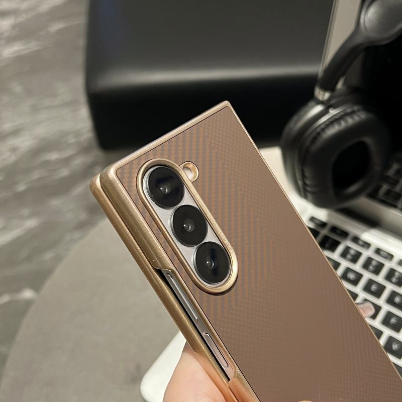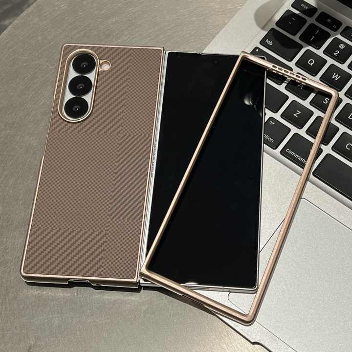 Funda de teléfono móvil con patrón de fibra de carbono de negocios para Samsung Z Fold 4 5 6, funda protectora trasera ultrafina sin bordes para PC dura