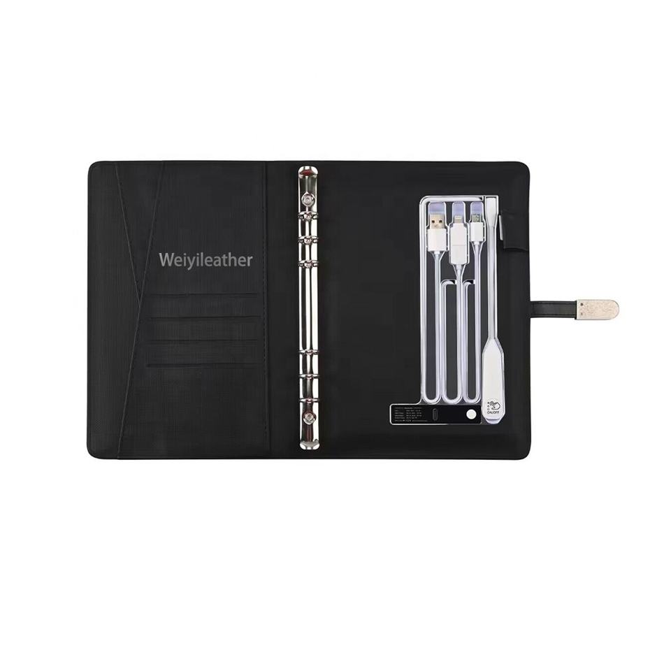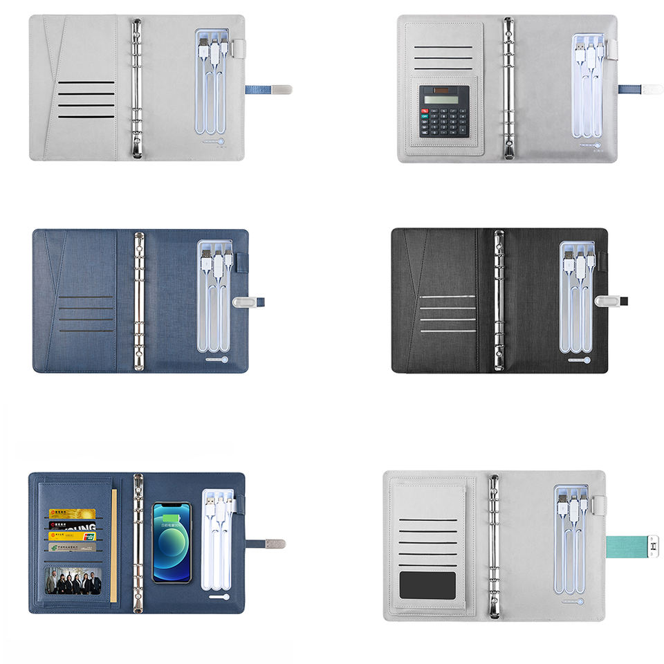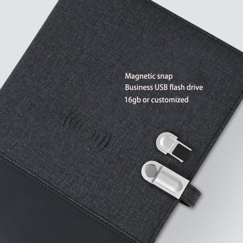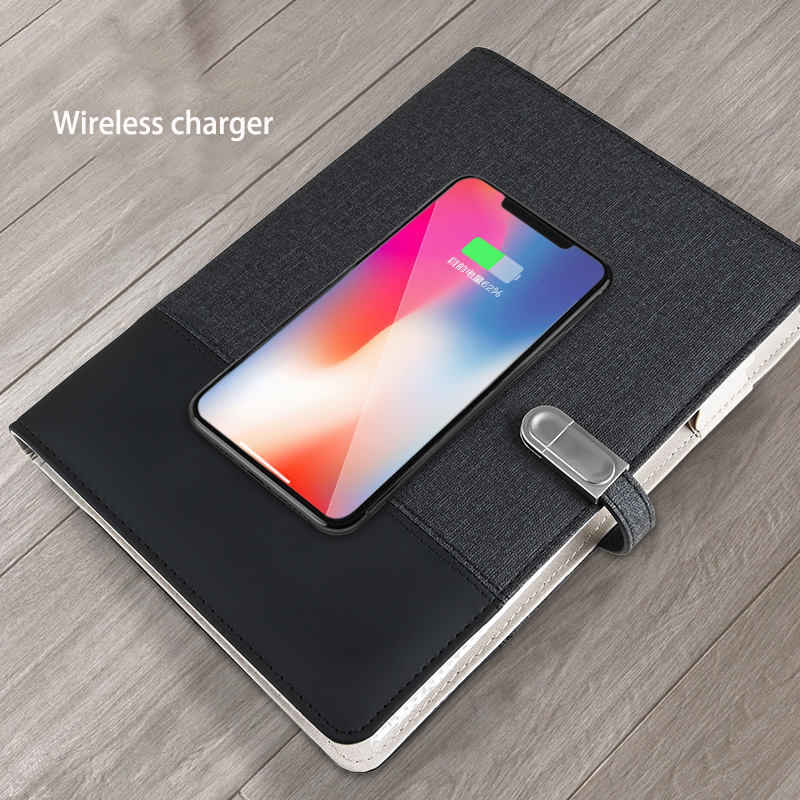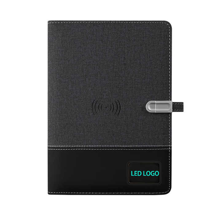 Regalo de negocios Logotipo de iluminación Led personalizado Tamaño A5 Agenda de eventos 8000mAh Cargador inalámbrico Banco de energía Diario Notebook con Usb
