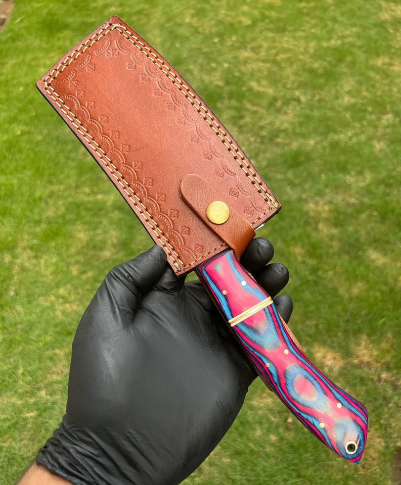 Cuchillo para picar hecho a mano de acero de alto carbono de carnicero, cuchillos de carnicero con funda, cuchillo personalizado para exteriores