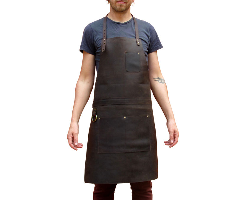 Mosquetones metálicos para trabajo de cocina, delantales con correa de cuero, cinturón ajustable, tres bolsillos, CE