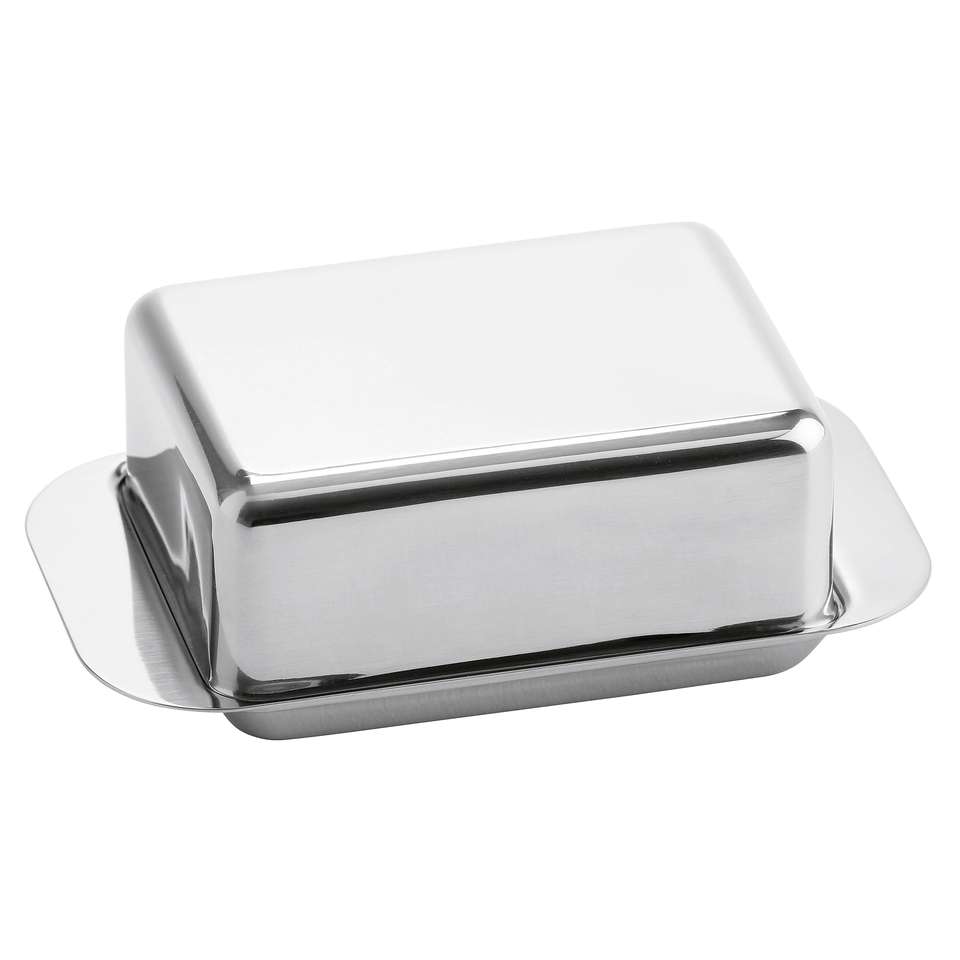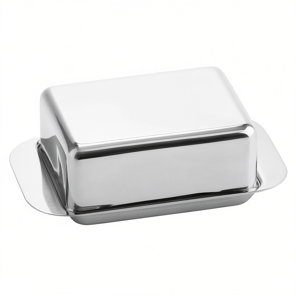 Mantequillera rectangular de acero inoxidable de 125g con tapa para uso en la cocina