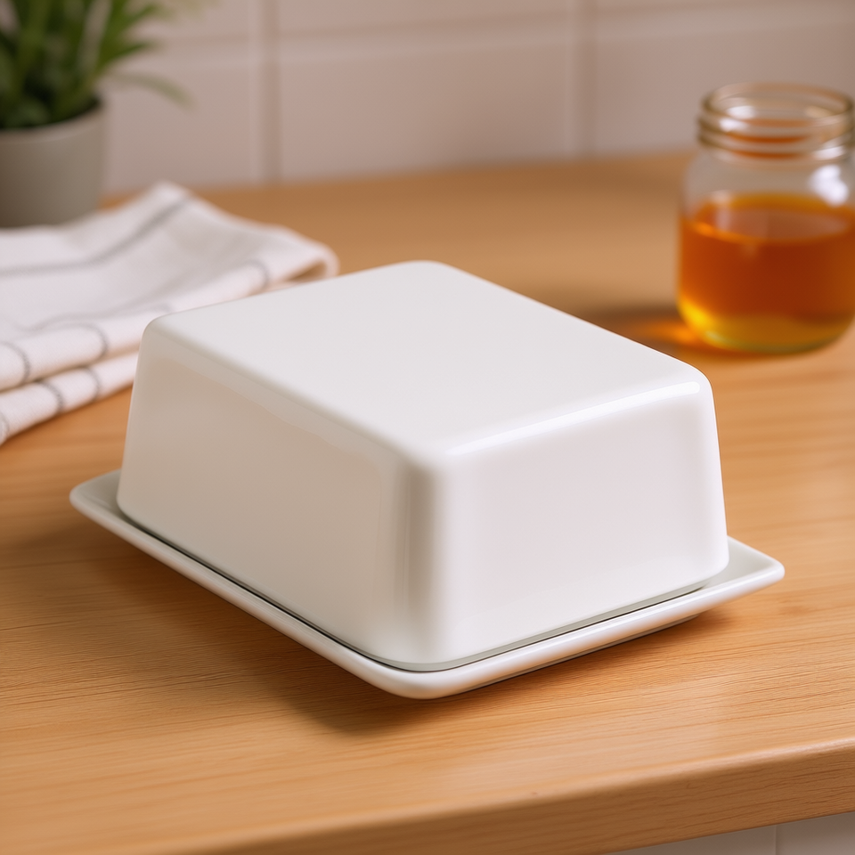Mantequillera de cerámica blanca cuadrada, diseño natural, fabricada en Alemania.