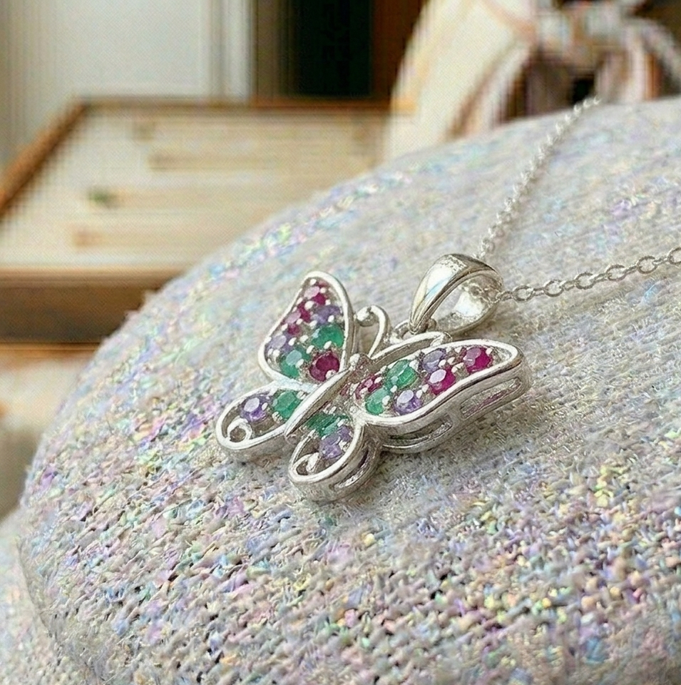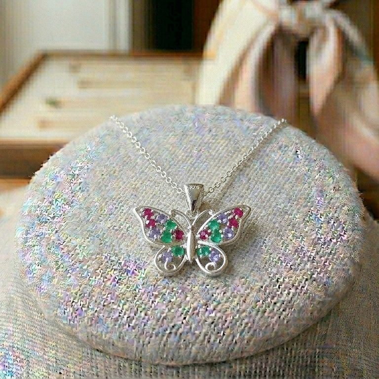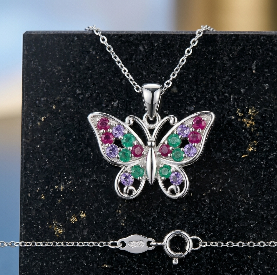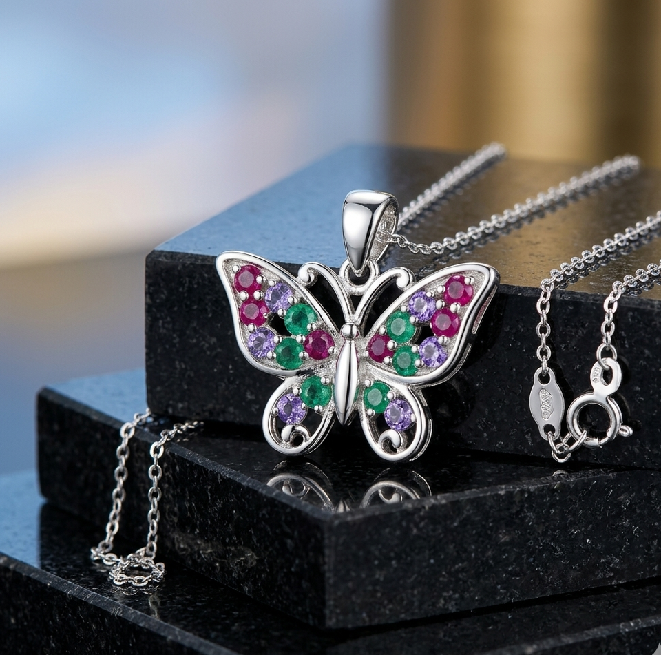 Collar con Diseño de Mariposa, Minimalista, con Múltiples Piedras de Circonia Cúbica, 16 Pulgadas de Largo, Plata de Ley 925, Chapado en Oro de 18K, Joyería Elegante para Uso Diario