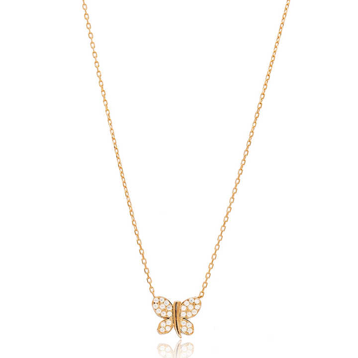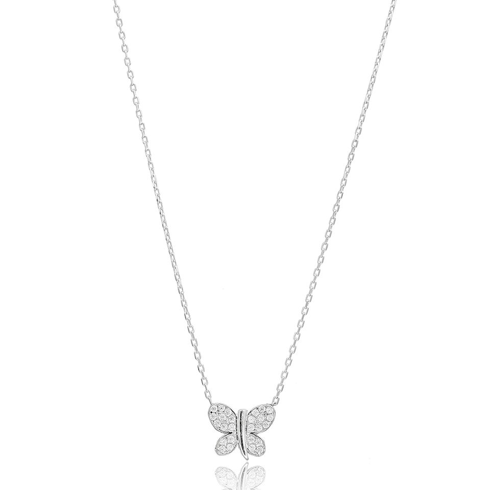Collar con abalorio de piedra de circonita blanca con diseño de mariposa, venta al por mayor, joyería de plata de ley 925 turca hecha a mano