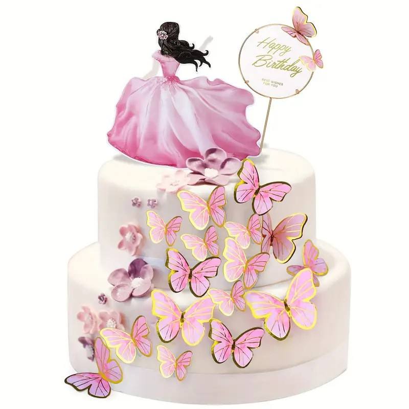 Decoración de Pastel de Papel Ecológica con Diseño de Mariposa, Adhesivos Decorativos para Pared de Halloween, Feliz Cumpleaños, DIY, para Fiesta de Cumpleaños de Niña