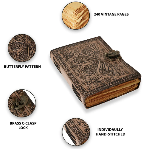 Product name:Butterfly Floral Embossed Leather Journal