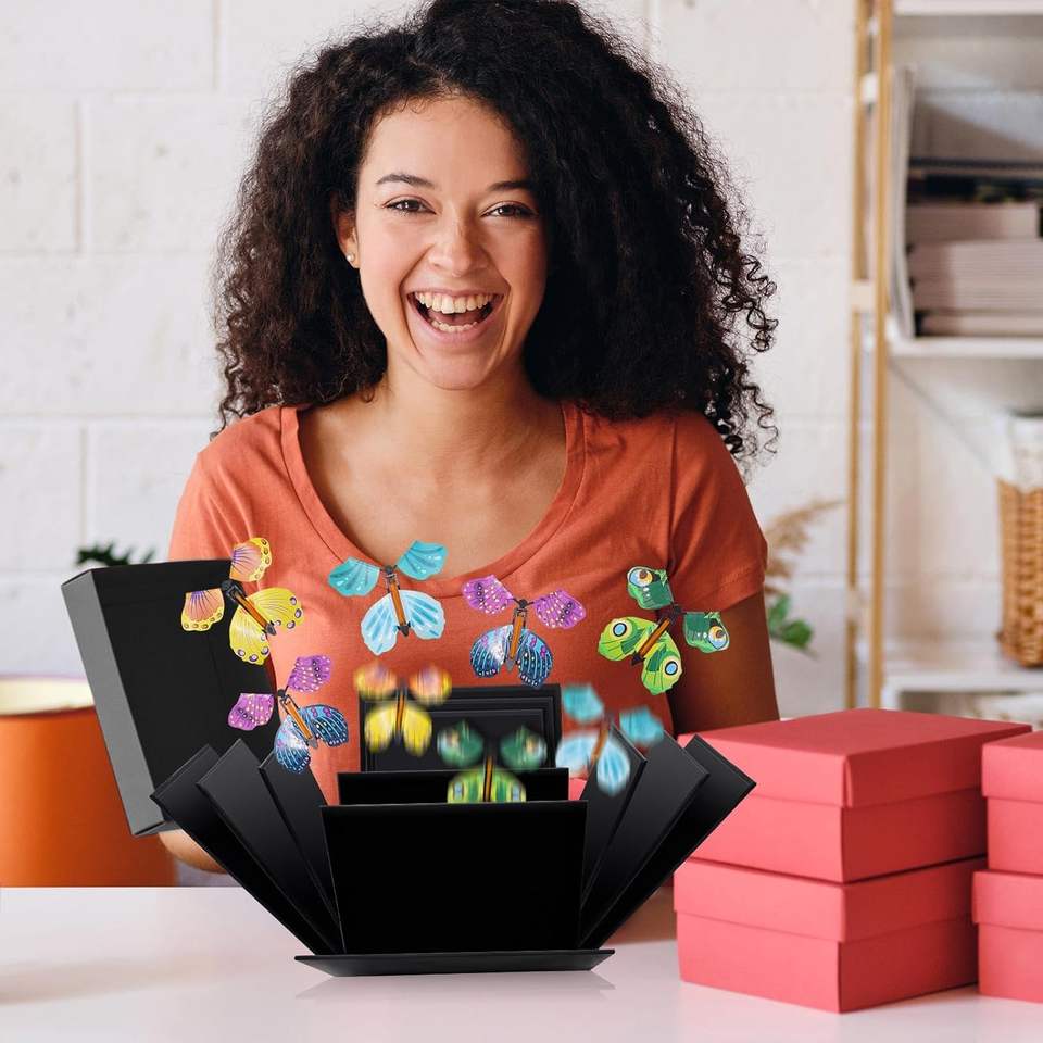 Carpeta de Papel Blanca con Mariposas Voladoras, Regalo Sorpresa con Dulces, Materiales Reciclados, Personalizable, para Cumpleaños