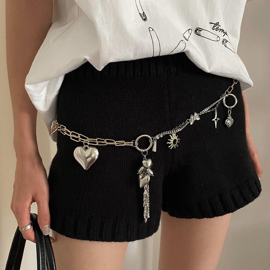 Cinturón de cintura con cuentas para mujer, borla de estrella solar con amor de mariposa hecho de perla y Metal para decoración de abrigos de vestir