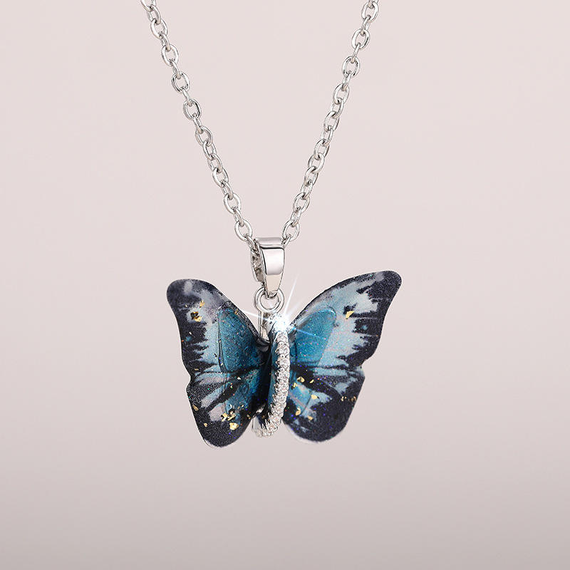 Colgante de Mariposa en Plata 925 con Baño de Rodio y Cristales de Circonita, Joyería Romántica Unisex para Uso Diario