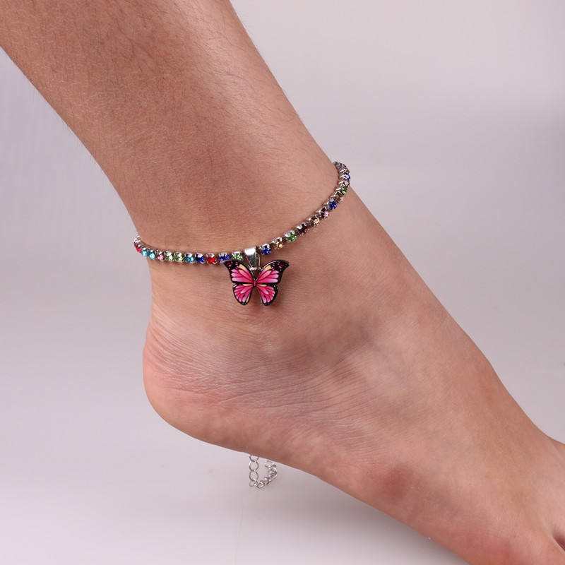 Tobillera con Colgante de Mariposa, Adorno de Pedrería de Aleación de Zinc para Mujer, para Fiestas