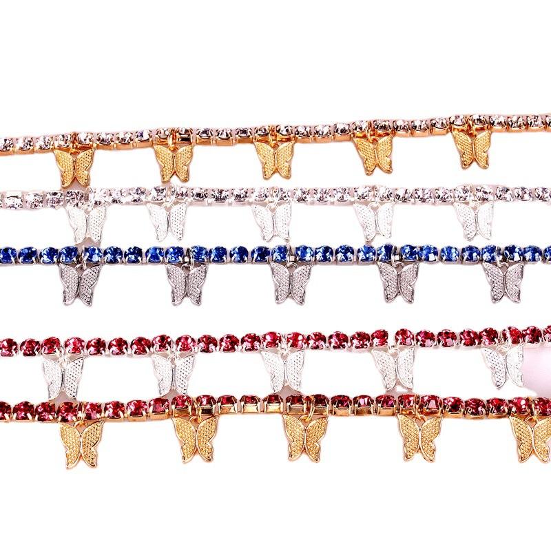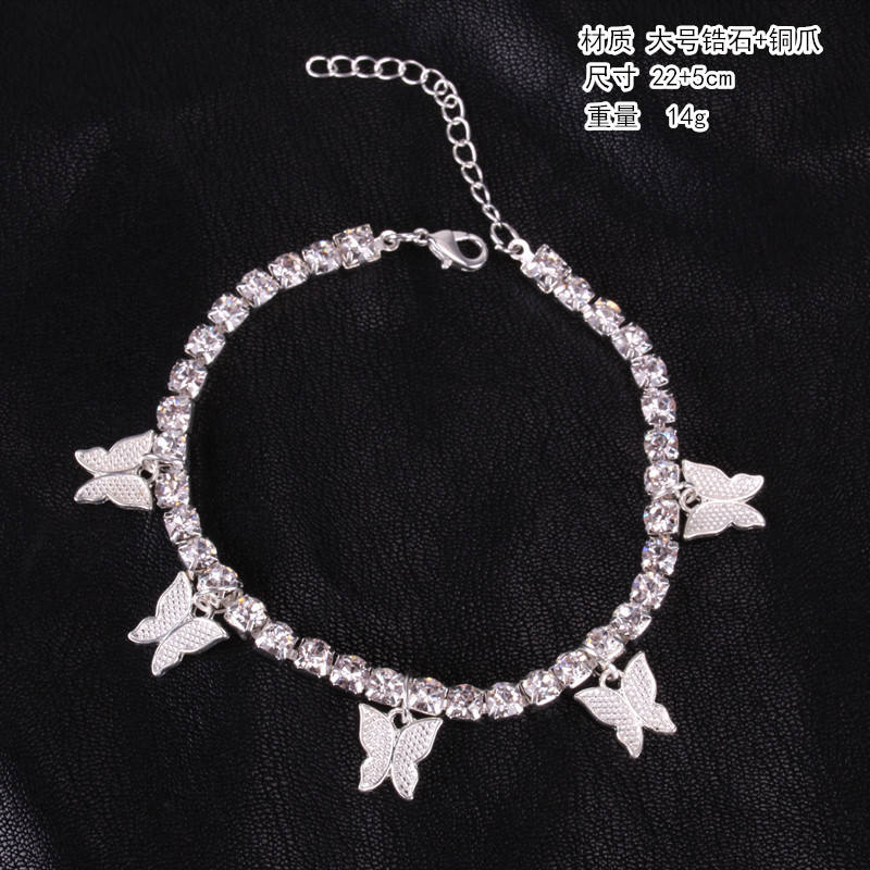 Tobillera de Mariposa con Pedrería, Adorno para el Pie de Aleación de Zinc, Joyería para Mujer