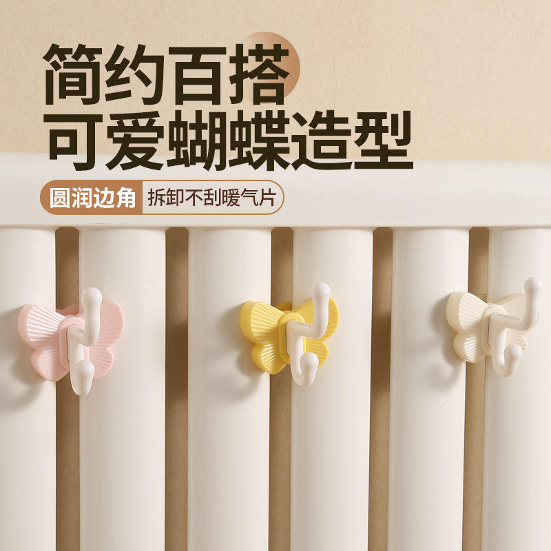 Butterfly Shape Double Hook Wall Mount Storage Rack For Clothes Towel Drying No Drill Required 3kg Load ABS Material