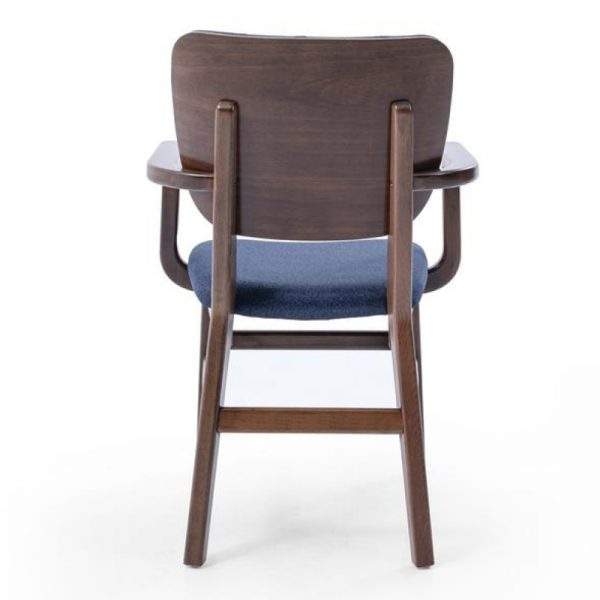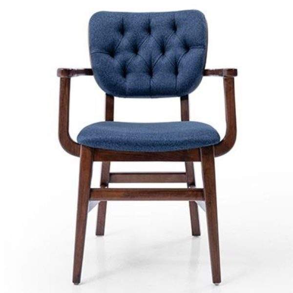 Silla de comedor con brazo de botón hecha de marco de madera de teca maciza con espuma cubierta y asiento de tapicería y respaldo para interior