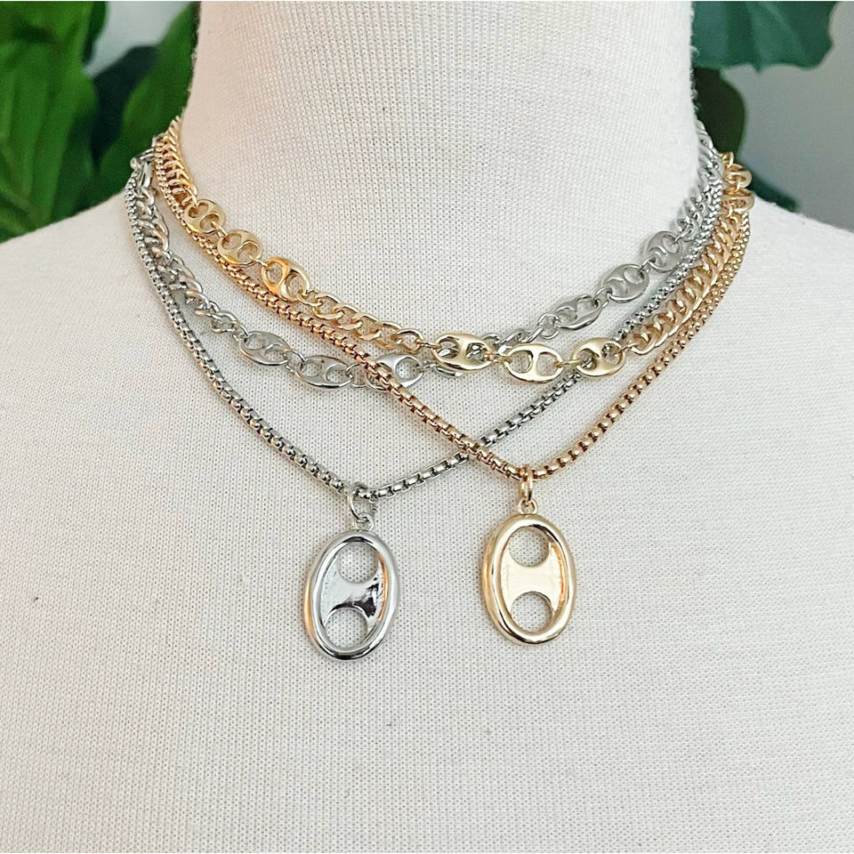 Conjunto de Collar con Colgante de Botón Dorado