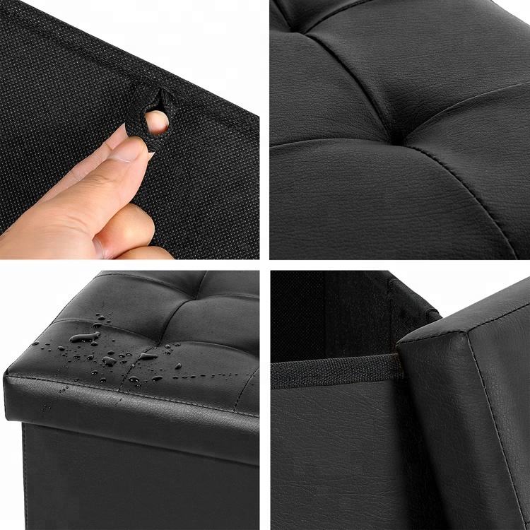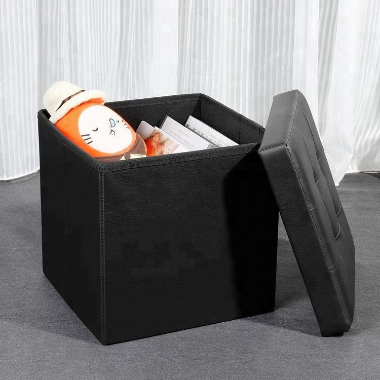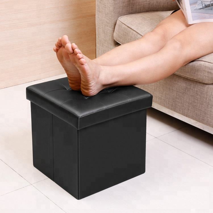 Nombre del producto:Botón de cuero negro de diseño de almacenamiento plegable puff Otomano