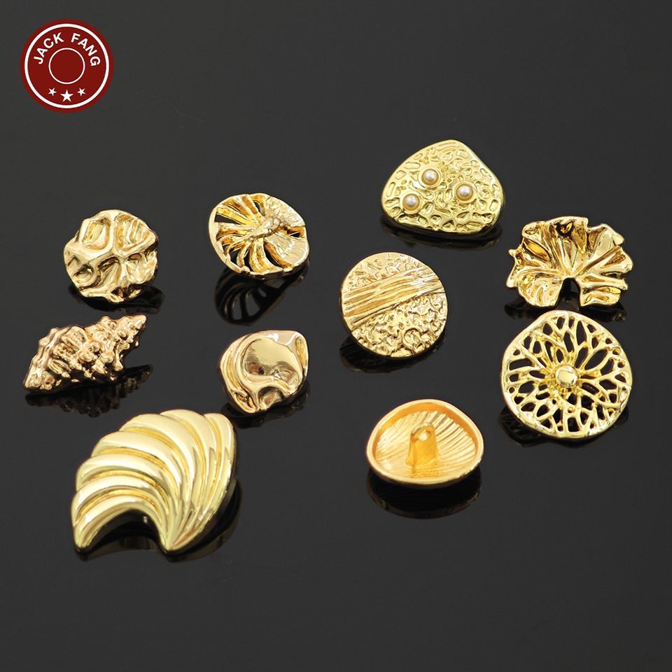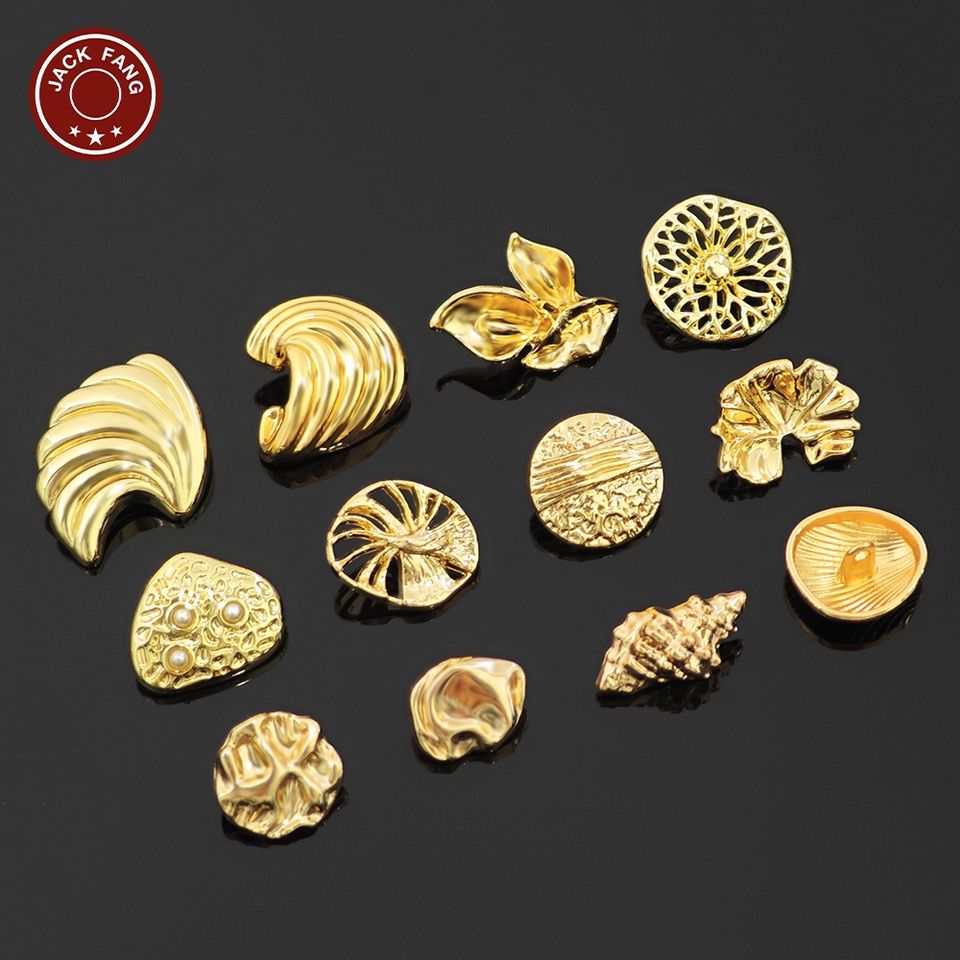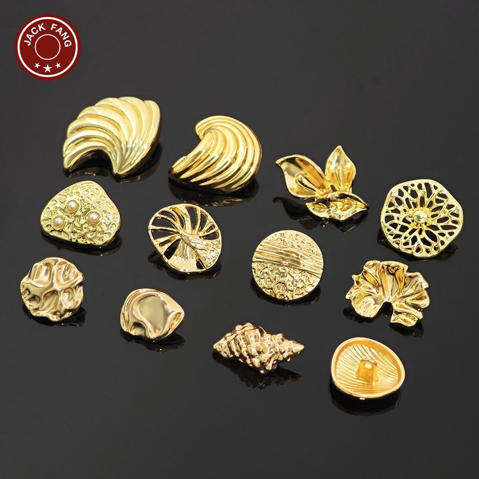 Botones Metálicos con Vástago, Botones Personalizados con Formas Irregulares, Logotipo Grabado, Botón Elegante Dorado para Ropa