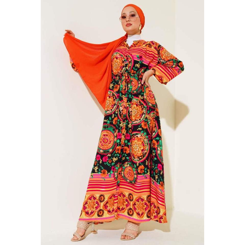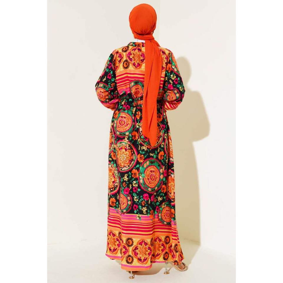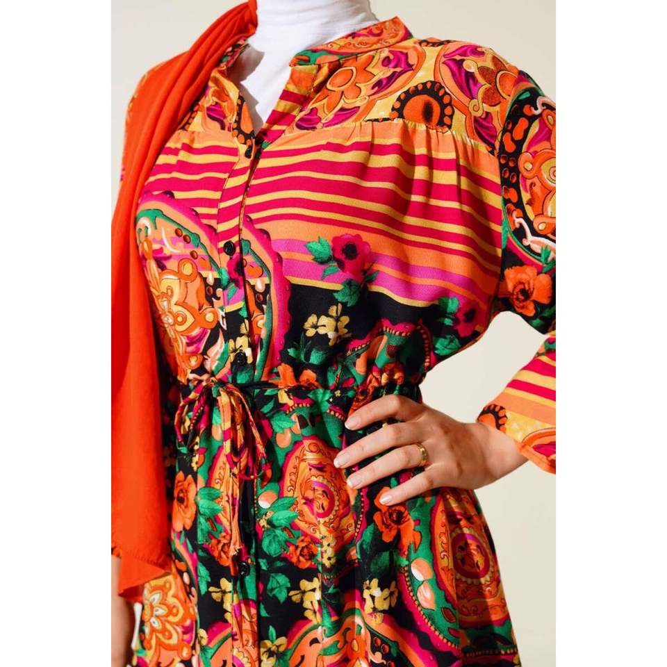 Vestido estampado abotonado naranja