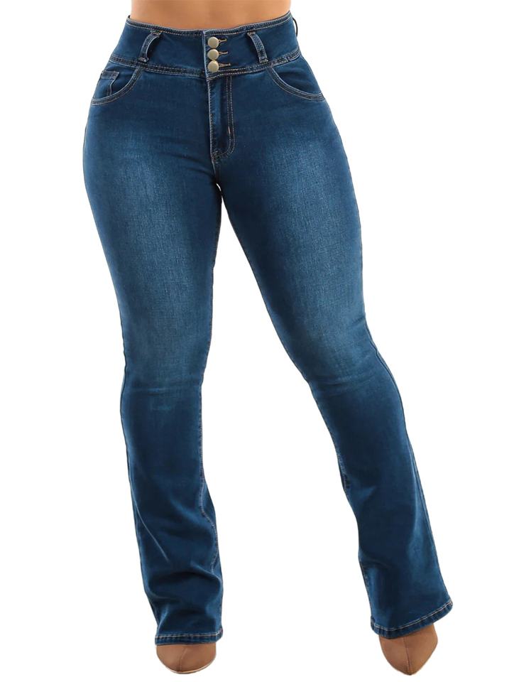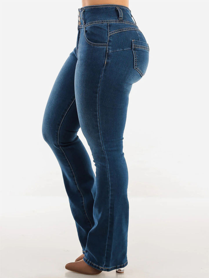 Pantalones vaqueros mini acampanados azules lavables con cierre de botones, de cintura alta, que realzan los glúteos, elegantes y sexys