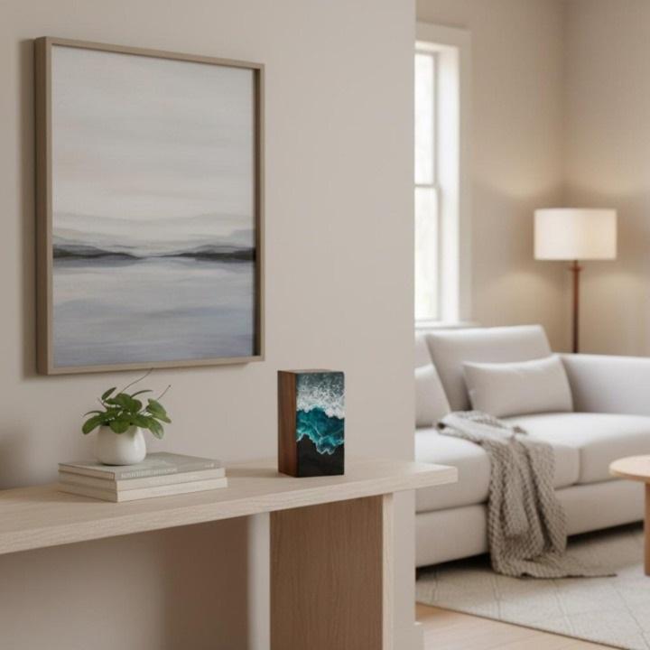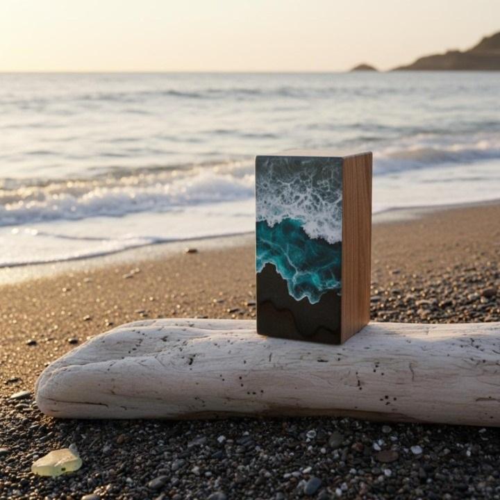 Compre urna de cremación con resina epoxi multicolor y superficie pulida de madera artesanal. Urna de cremación en venta por exportadores.